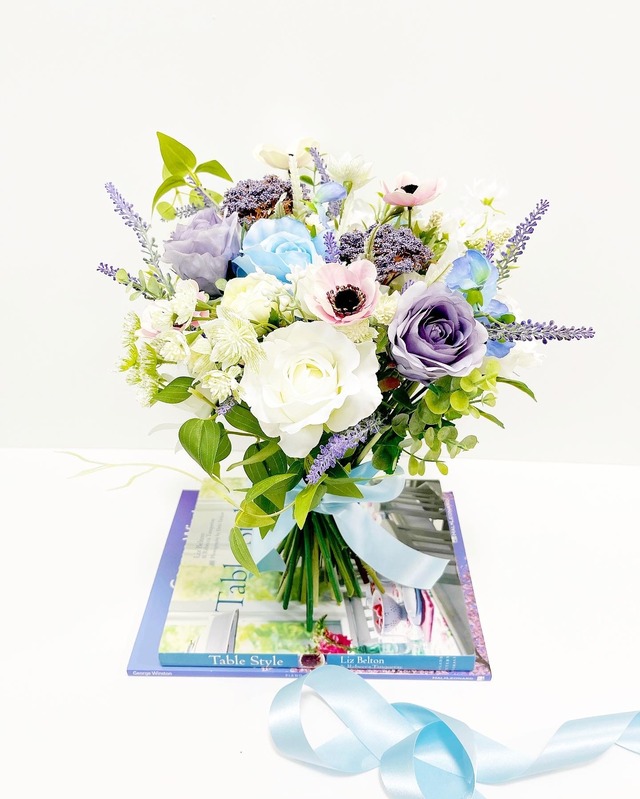 横幅約25㎝のミドルブーケ 高さは31㎝です。 清楚なさわやかな色合いで、見ていると 心落ち着くような綺麗めお上品ブーケです。 まるで生花のような美しさ。。 厳選したインポートのアーティフィシャルフラワー(高品質造花)です。 アーティフィシャルフラワーなら、、、 リゾートウェディングや、前撮り~ウェディング当日まで手軽に移動も可能、長持ちします♪ ご質問・ご要望がございましたら、お気軽にお問合せくださいませ♪ 【サイズ】 縦約:31 幅約:25 ※グリーンを含む凡そのサイズです 【オススメ】 ・ウェディングブーケ ・贈呈式用花束 ・海外ウェディング、前撮りブーケ ・お誕生日プレゼント、お祝い 【納期】 在庫があれば、7~10日前後で発送致します。 オーダーメイドは3週間前後お日にち頂いております。 ※他でも販売もしている為、在庫がない場合は制作にお時間がかかることがございます。 その際、花材が多少変更する場合がございますので、予めご了承くださいませ。 【BOXについて】 BOXは別売りになります(2,000円) Reiko bouquetは、東京アーティフィシャルフラワー協会会員 三原亮介氏(PINKBANK)認定BOXフラワー販売店です。 ・BOXサイズ:直径14.5cm×高さ16cm ・お色は「ホワイト」か「ブラック」「ピンク」「グレー」「ティファニーブルー」「グリーン」「オレンジ」よりお選び下さい。 ・カリグラフィーの文字は、ご注文後に在庫のご案内をさせて頂きます。 オーダーメイドブーケご希望のお客様は、商品一覧に掲載しております 「オーダーメイドご注文前に必ずお読みください」ページをご覧ください♡ ******************************