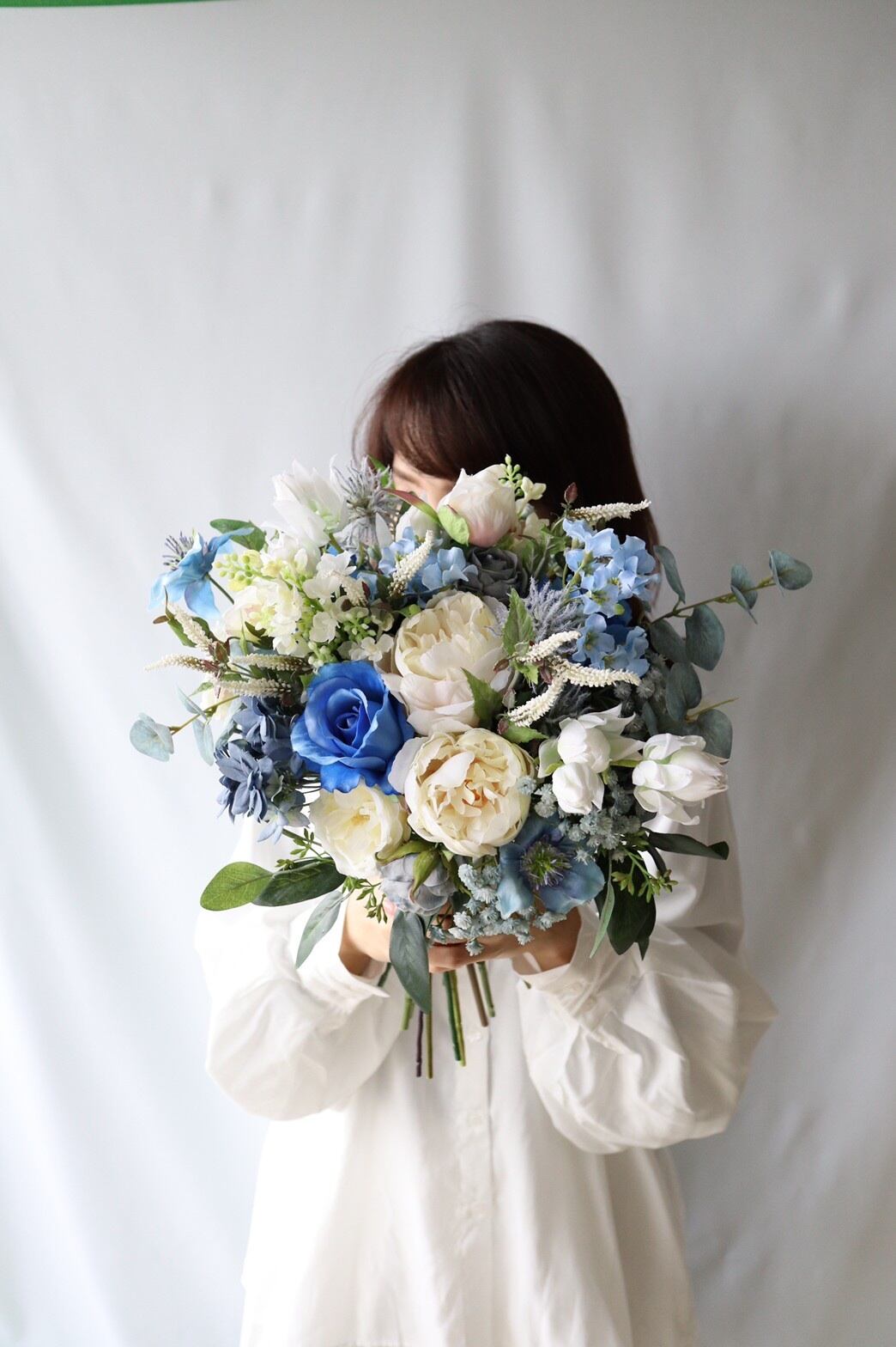 ブルーと白のコントラストのブーケはいかがでしょうか☺️